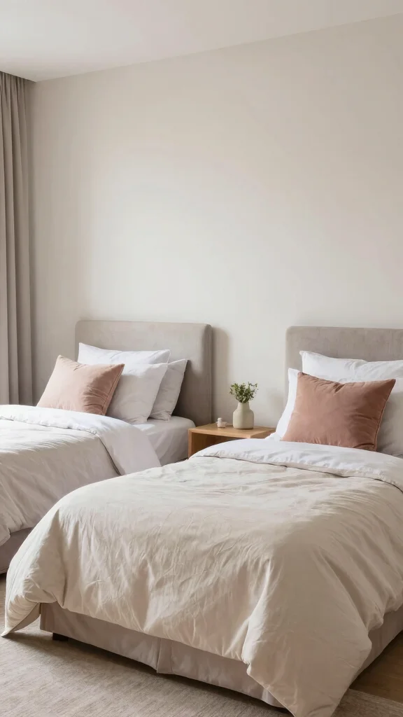 Fun fact: corner bed layouts can free up to 25% more floor space in a small room. With 2 beds in one room ideas, you still get cozy sleep zones and a shared bedside table—the setup is both practical and stylish.