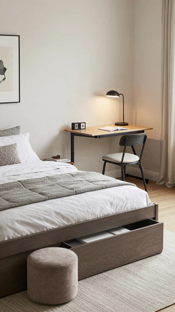 Multi-functional furniture balances style and practicality, making it ideal for small bedroom solutions.