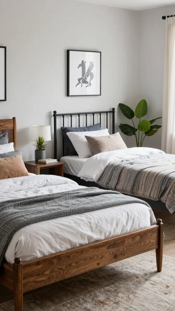 Layering bedding can add warmth and texture to your shared bedroom. With two beds in one space, you can mix and match styles to create a unique vibe. Choose a foundational color for both beds, then layer with contrasting throws or pillows to express individual tastes. Incorporate textures like knitted throws or velvet cushions to create a cozy atmosphere.