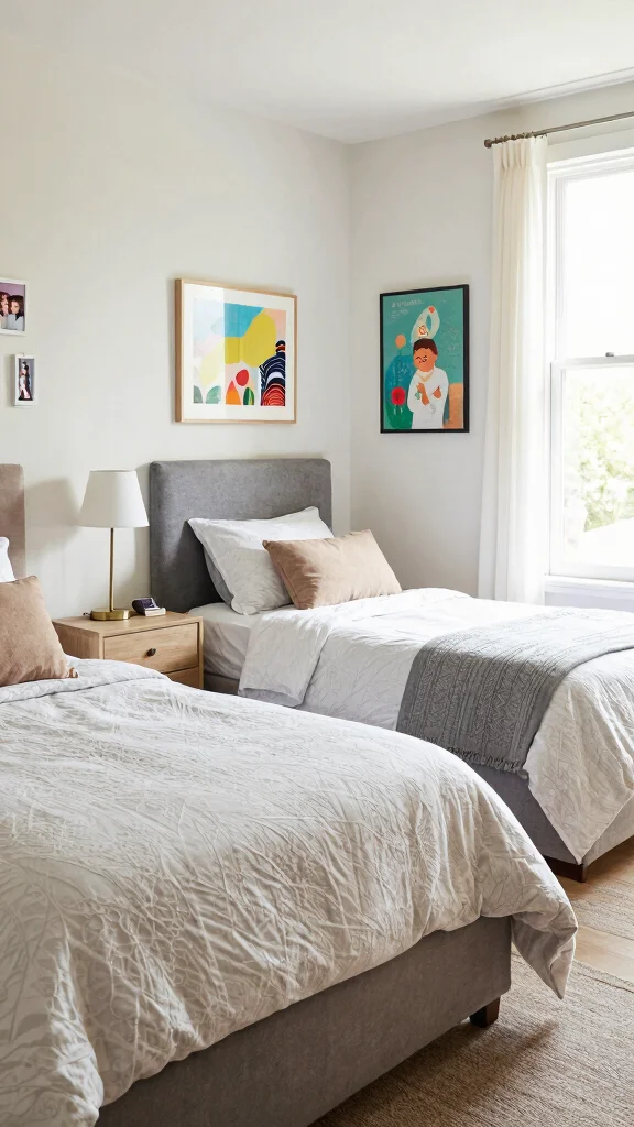 Creating personal zones in a shared bedroom can make a big difference in comfort. A room divider can effectively separate two beds, giving each occupant their own slice of privacy. Consider decorative screens or bookshelves to maintain an airy feel while providing separation.