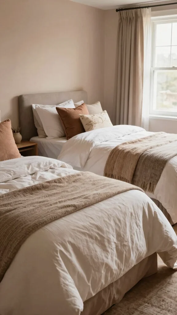 A light and airy color scheme can transform a shared bedroom, making it feel spacious, welcoming, and serene.