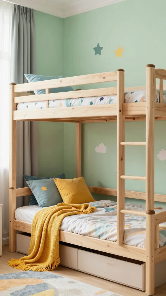 Answer: Start with a cohesive color palette and shared bedroom decor that balances both beds. Use matching bedding or complementary prints to create harmony, and install wall-mounted shelves or a slim dresser between the beds for storage without crowding. Add a soft room divider like a curtain to give each child a sense of personal space while keeping maximizing small spaces in mind. Finish with playful accents and kids room design ideas that are easy to swap as they grow.