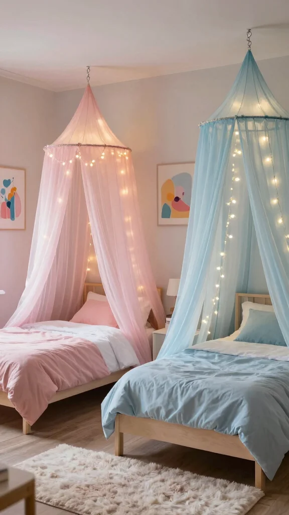Fun fact: Canopy beds with airy fabrics and fairy lights make a shared space feel larger and calmer. With 2 twin beds in one room ideas, personalize each bed with color and pattern for a cozy retreat.