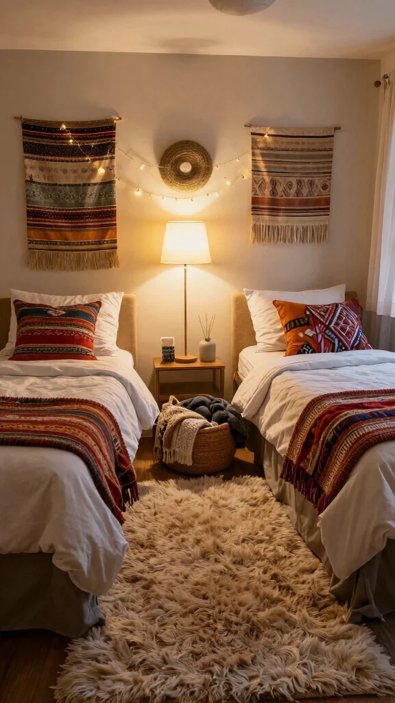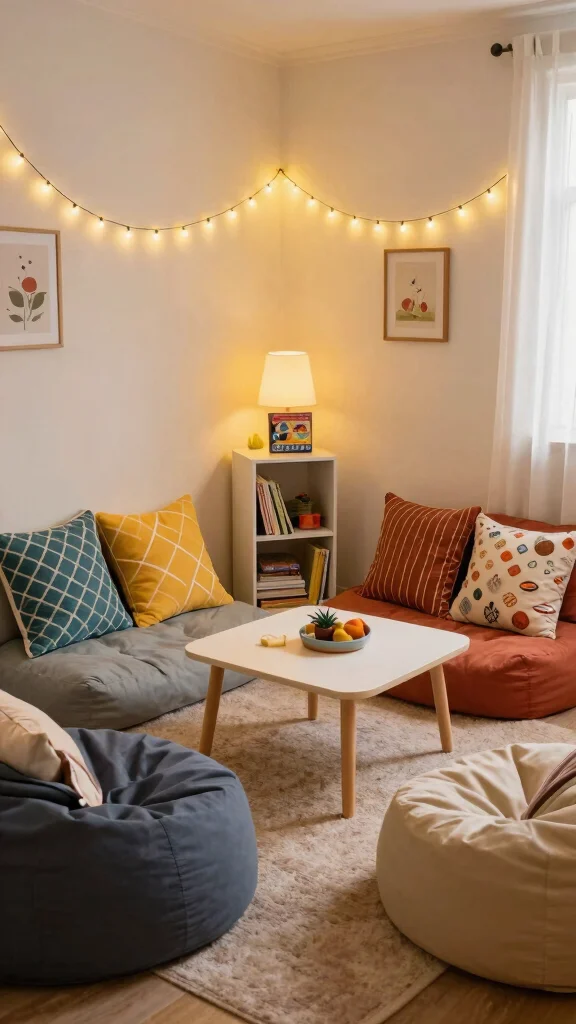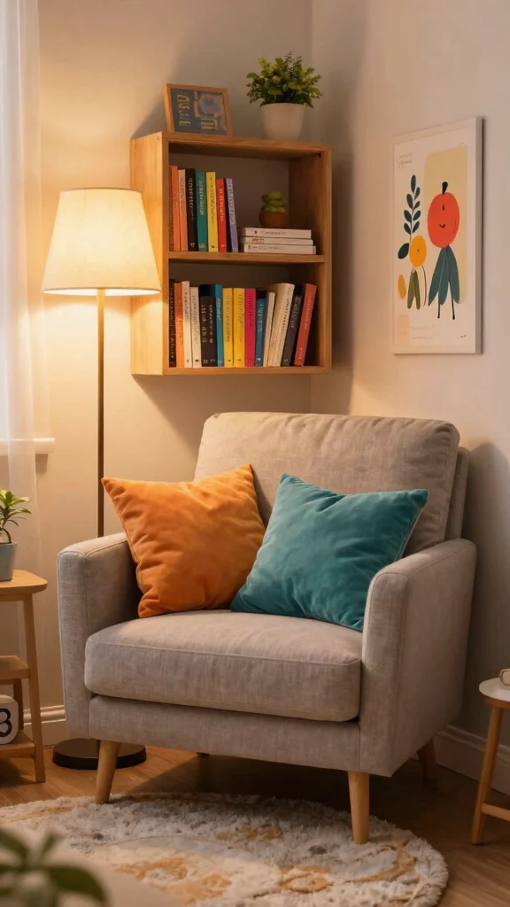 Choose inviting seating options that encourage lounging, and consider warm lighting with string lights or a small lamp to set a comforting mood. Personal touches like throw pillows or blankets reflecting each occupant’s style add character to the corner.