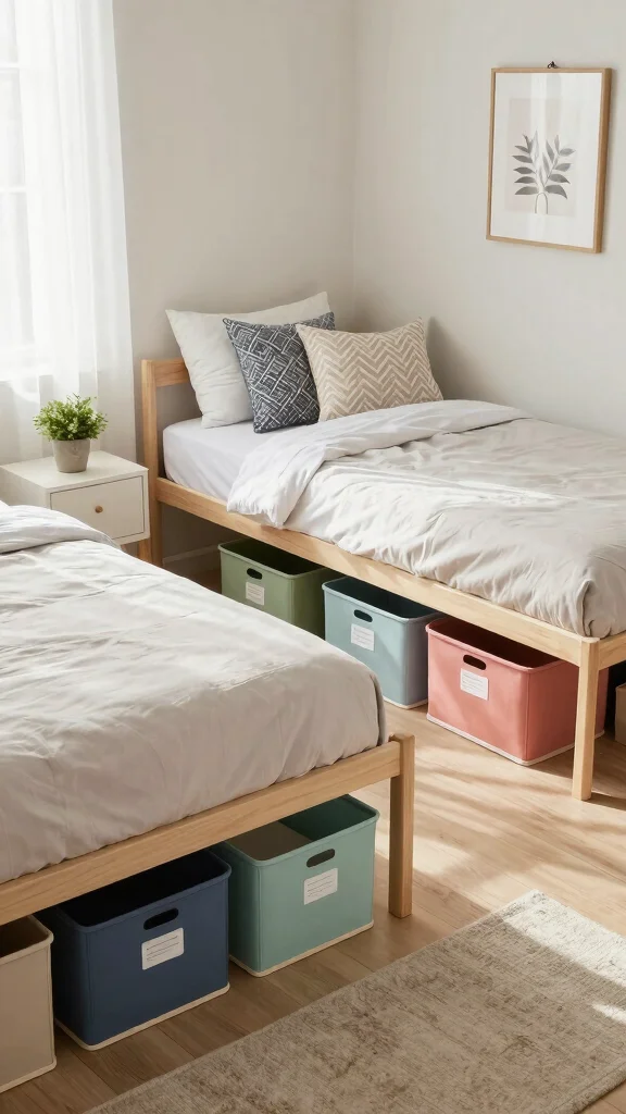 Utilizing under-bed storage is a savvy way to maximize space in a shared twin bedroom. By employing stylish bins or drawers that slide neatly under each bed, you can keep the room organized and free of clutter. This solution enhances functionality while making every inch of space count.