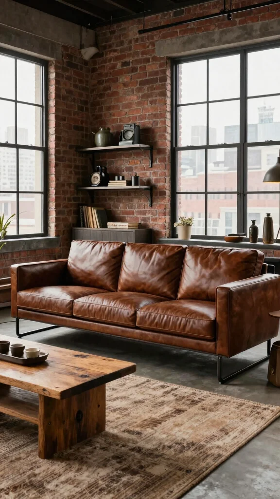 Industrial design adds an urban twist to your living room, merging style with comfort. A 3 seater sofa in leather or faux-leather paired with metal accents establishes a chic foundation. To enhance the industrial look, incorporate elements like exposed brick, concrete details, and metal shelves.