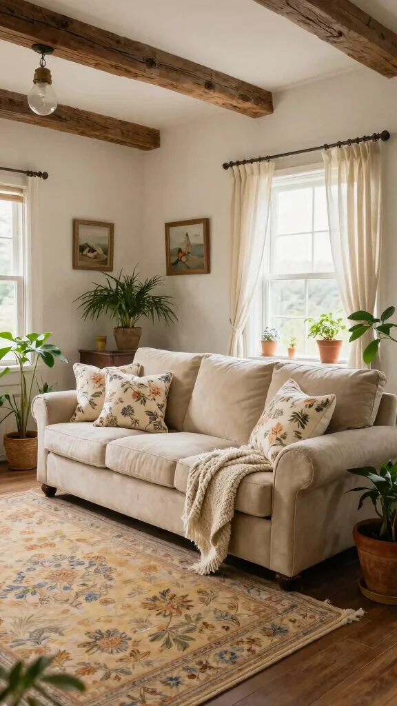 Oversized cushions can promote lounging, while budget-friendly finds at thrift stores can add character without overspending. This style encourages a homey atmosphere conducive to family gatherings.