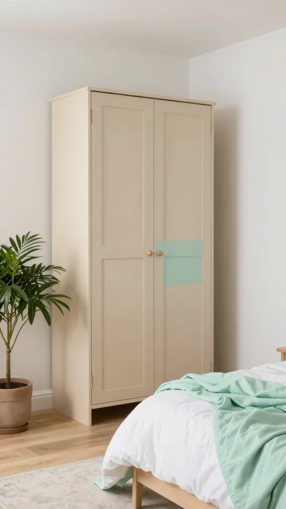 Incorporate accent colors such as dusty blue or terracotta to add depth and personality to your wardrobe design.
