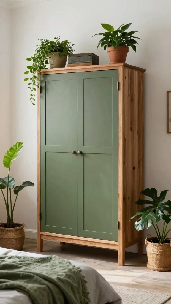 Olive green is ideal for anyone who cherishes earthy tones and a connection to nature. When paired with natural wood elements, this combination creates a rustic and cozy ambiance that feels inviting. An olive green wardrobe can act as a beautiful statement piece, grounding the room and bringing a sense of calm. Mixing in white and beige accents can establish a harmonious balance.