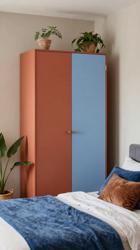 Terracotta brings vibrant, earthy energy to your bedroom, especially when paired with soft blue. This combination captures the essence of nature, invoking warmth and serenity. A terracotta wardrobe can serve as a striking statement piece, while soft blue offers a calming touch. Incorporating natural textures in bedding and curtains can bring a cohesive look to your space.