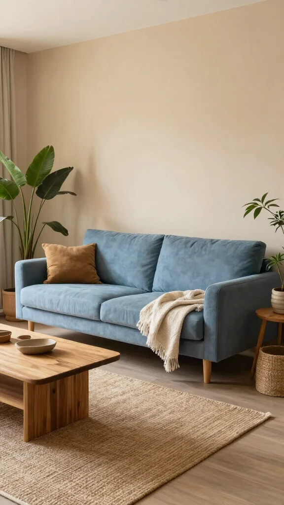 – Pair a woven jute rug with your blue sofa for texture.