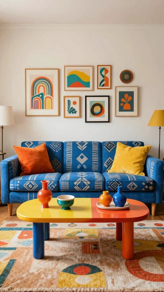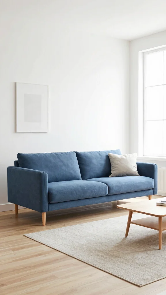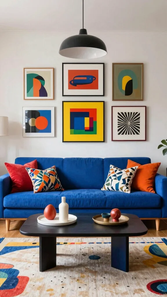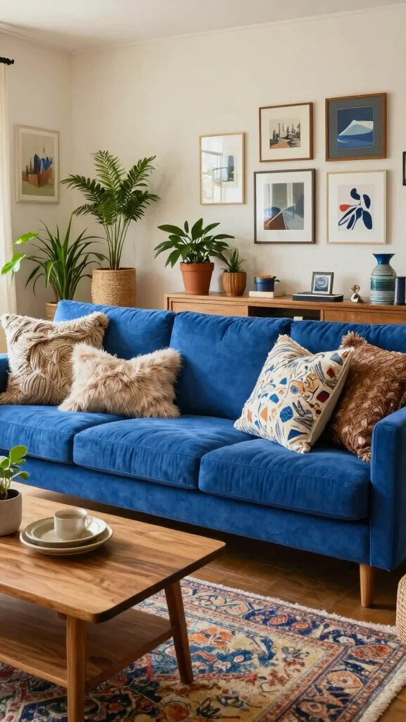 For those who appreciate bold design, a retro-inspired blue sofa can serve as a vibrant focal point in your living room. This approach encourages playful use of colors and patterns that evoke nostalgic styles. Picture incorporating geometric patterns and retro art pieces that enhance the lively vibe of your space. This fun design connects to current trends celebrating vintage aesthetics with a modern twist.