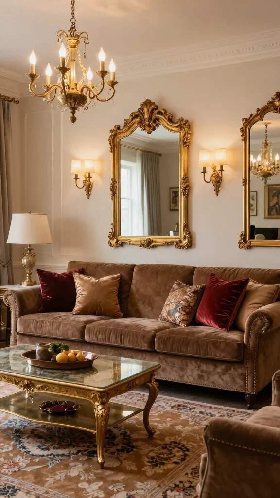 This vintage glam approach transforms your living room into an upscale yet inviting oasis.