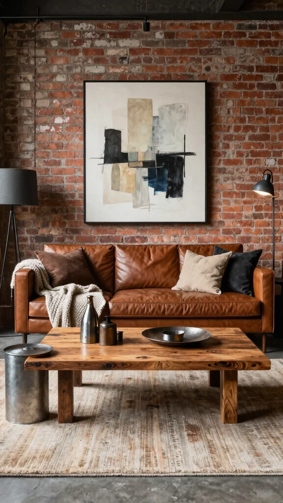 Honestly, a brown leather sofa anchors brown sofa living room ideas with an industrial-chic vibe—edge without coldness. Start with exposed metal fixtures, a reclaimed wood coffee table, and warm lighting to keep it cozy and inviting.