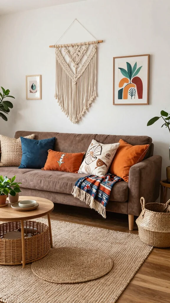 Utilize a variety of textures, such as macramé wall hangings, woven rugs, and natural fiber baskets. Including unique decor pieces—like funky art or handcrafted items from travels—will further enrich the space.