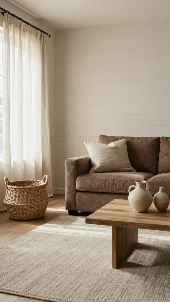 Neutral color palettes anchor the look: warm creams, soft beiges, and taupe walls pair beautifully with a brown sofa. Add accent colors like deep greens, navy, or burnt orange for depth. This approach is a classic timeless home decor strategy and fits brown sofa decor guidelines. Use textiles, rugs, and curtains to tie the palette together.