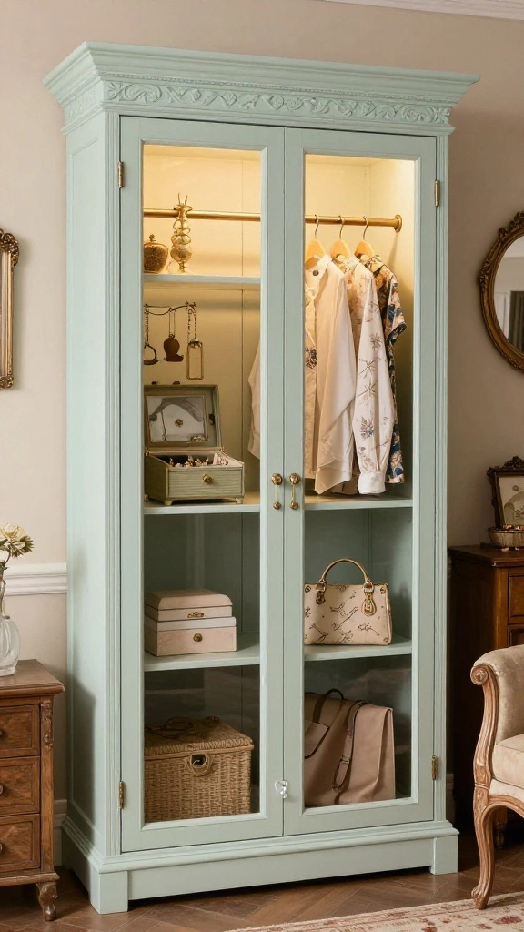 This vintage-inspired wardrobe brings warmth and personality to your space, telling a story of style and history.
