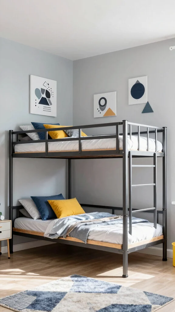 For a contemporary twist, consider industrial-style bunk beds that combine metal and wood for a chic look. These designs offer a unique aesthetic that stands out, adding a modern vibe to the room.