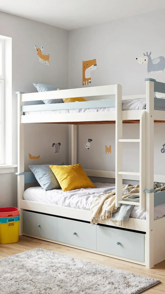 Start with a neutral base and add color accents you can swap as tastes change. Use removable decals or magnetic panels for children’s bedroom decor updates. Choose modular storage and components that can be reconfigured as your kids grow, preserving good resale value and space-saving furniture utility. With a little planning, your bunker beds for kids setup becomes a lasting feature that adapts to new kids room ideas.