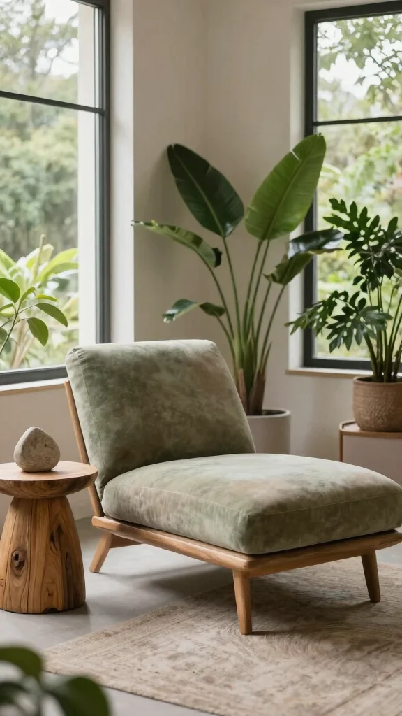 Incorporating natural elements like wood, stone, and plants will enhance this theme. Consider placing your chair near large windows to maximize natural light and views of your garden or yard.