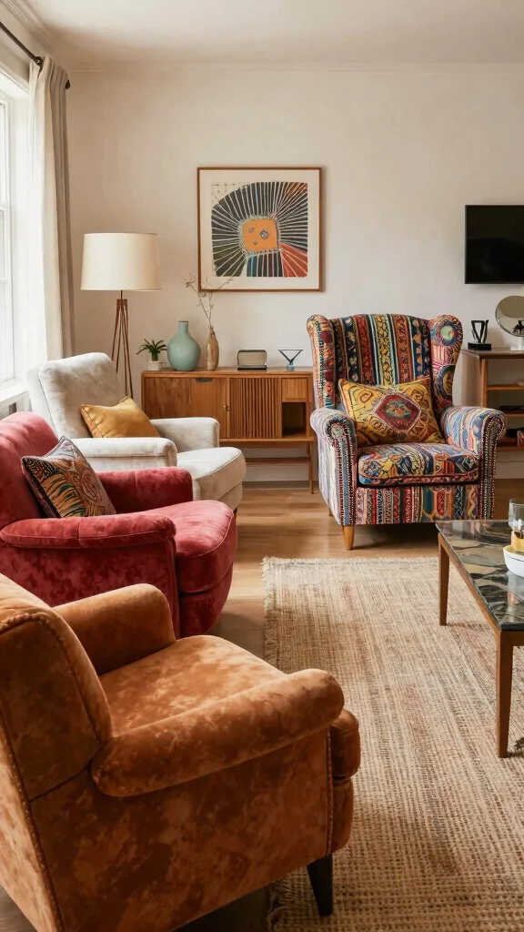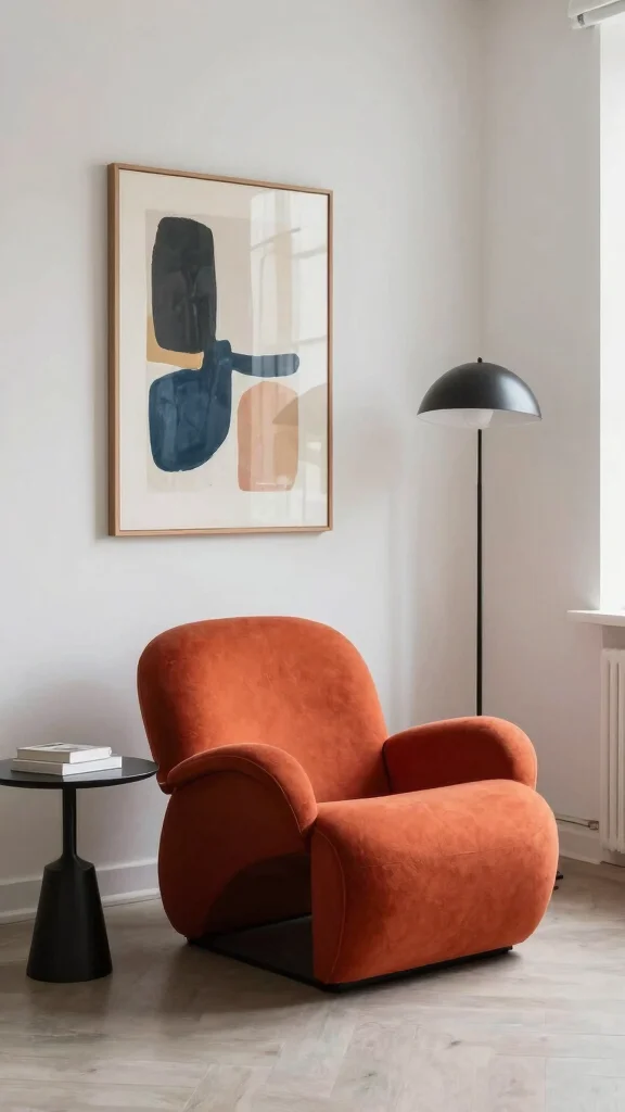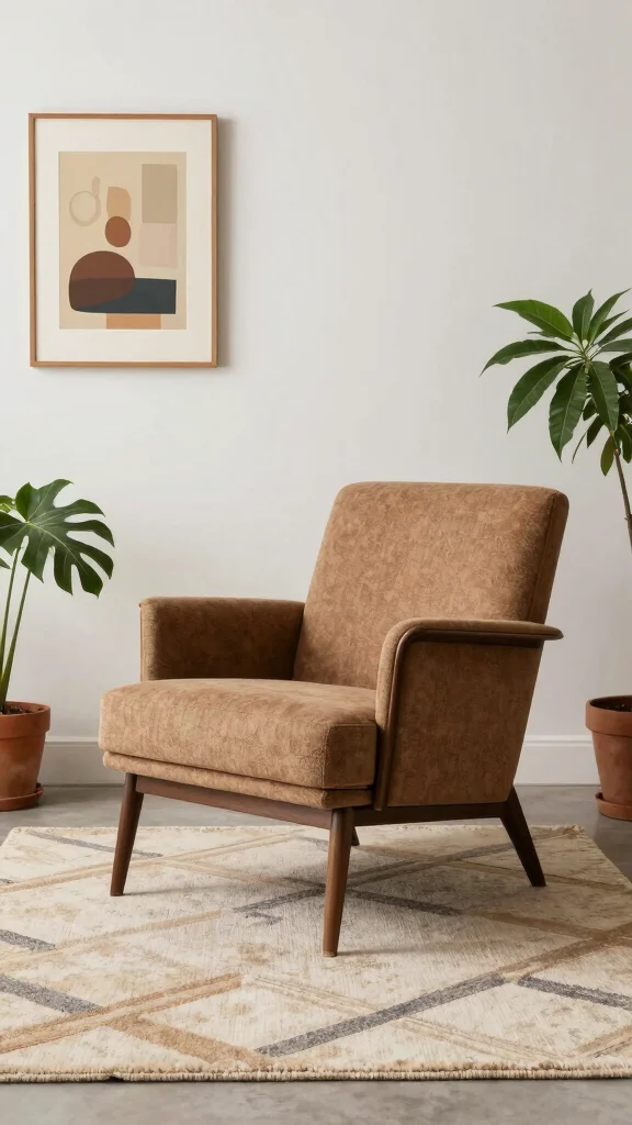To enhance the mid-century vibe, pair your chair with wooden furniture and retro-inspired accessories. A simple geometric patterned rug and minimalistic artwork can tie the whole look together.