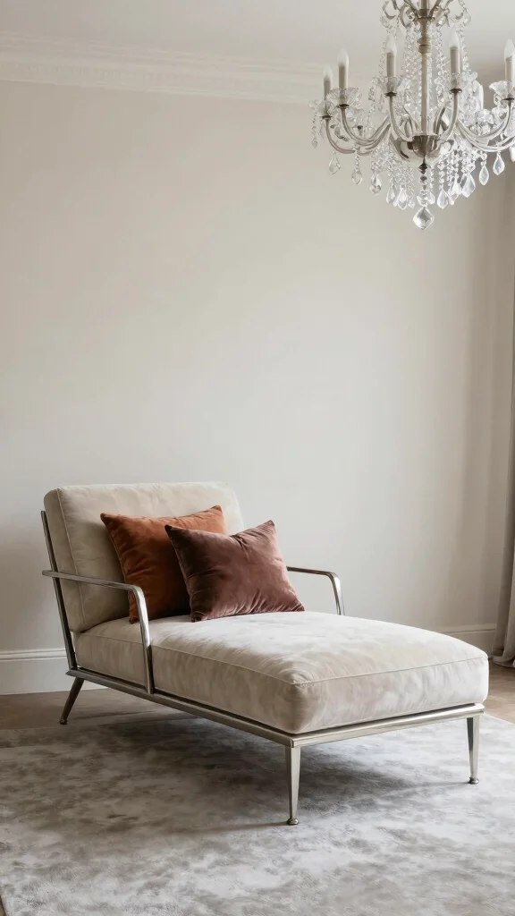 Pair your metallic chair with soft fabrics like velvet or plush upholstery to create a beautiful contrast between hard and soft textures. A few decorative pillows in rich colors can complete the look.