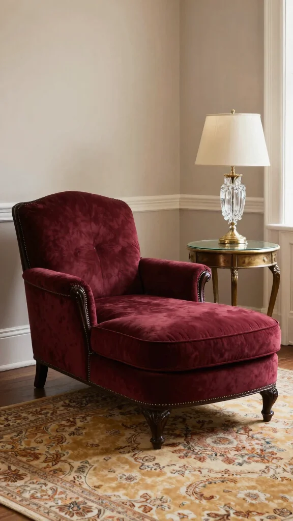 – Choose upholstery in classic colors like deep burgundy or navy blue.