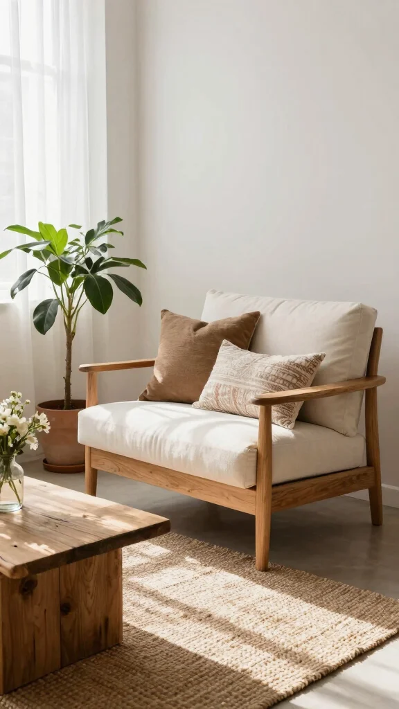– Use wooden side tables or benches for a rustic touch.