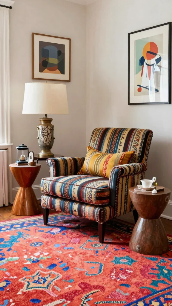 Accessorize with coordinating decor—keep your surrounding pieces subtle to highlight the chair’s patterns. A neutral or monochromatic color scheme provides the perfect backdrop.