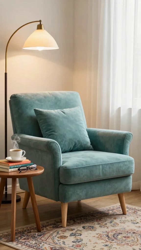 How can I accessorize a cozy reading chair to boost comfort and appeal?