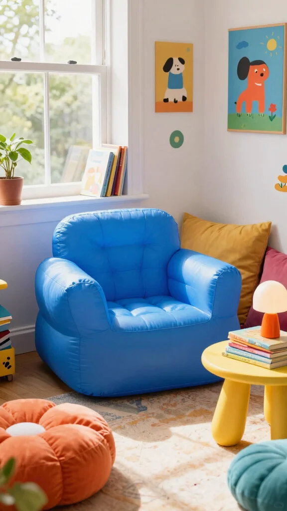 For a playful touch in your reading nook, consider an inflatable chair that adds a quirky seating option. These chairs come in various sizes and styles, making them suitable for both children and adults. Their unique design sparks joy and adds a fun element to your space.