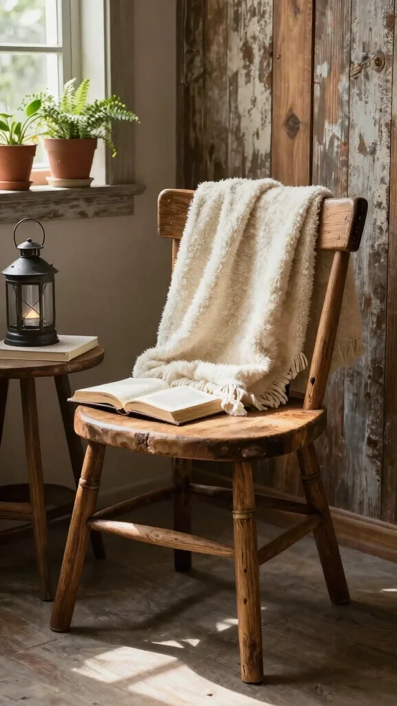 A vintage rocking chair brings a nostalgic charm to your reading nook with its gentle rocking motion that promotes relaxation. This delightful seating option invites you to lose yourself in a good book while savoring the soothing sway. Look for a chair with rich wooden finishes or painted styles that complement your decor.