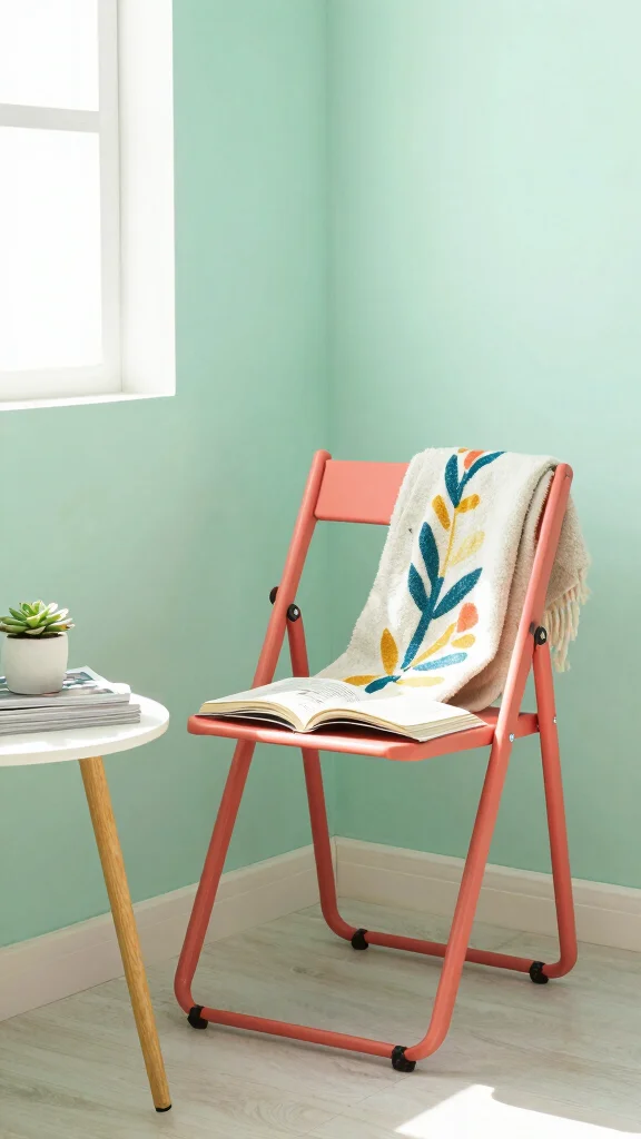 Fun fact: A compact folding chair brings instant versatility to a small cozy reading chair setup—many models weigh under 10 pounds yet support 250–300 pounds. Fold it away in seconds to reclaim 3–4 square feet and keep the vibe.