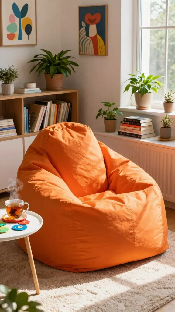 For a relaxed vibe in your reading nook, a bean bag chair is a fun choice. These chairs invite you to sink in and get comfortable, making them perfect for informal lounging. Available in various colors and sizes, they can fit seamlessly into any small space.