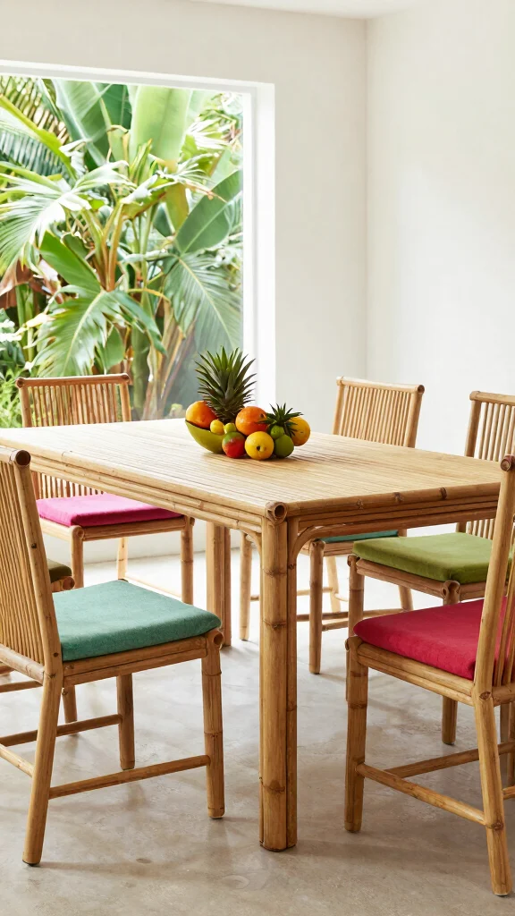 Handwoven rattan chairs bring a tropical flair to your dining area, enhancing its overall charm.