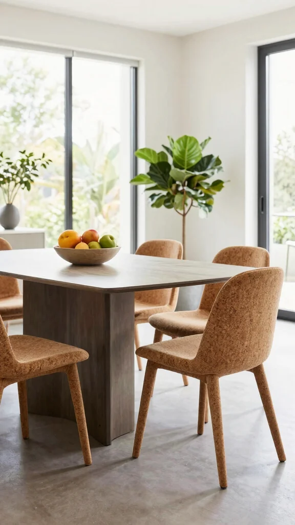 Incorporating cork chairs into your dining space is straightforward. Use them alongside a minimalist table to emphasize their design and choose cushioned options for added comfort. Pairing cork with indoor plants can elevate the organic vibe of your dining area.