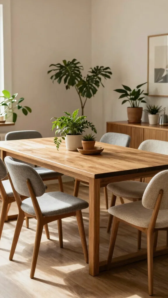 Did you know Scandinavian simplicity can visually boost a dining room by up to 30%? Choose solid wood chairs with clean lines in soft neutrals, and pair them with a light wooden table to solidify sustainable dining chair ideas.