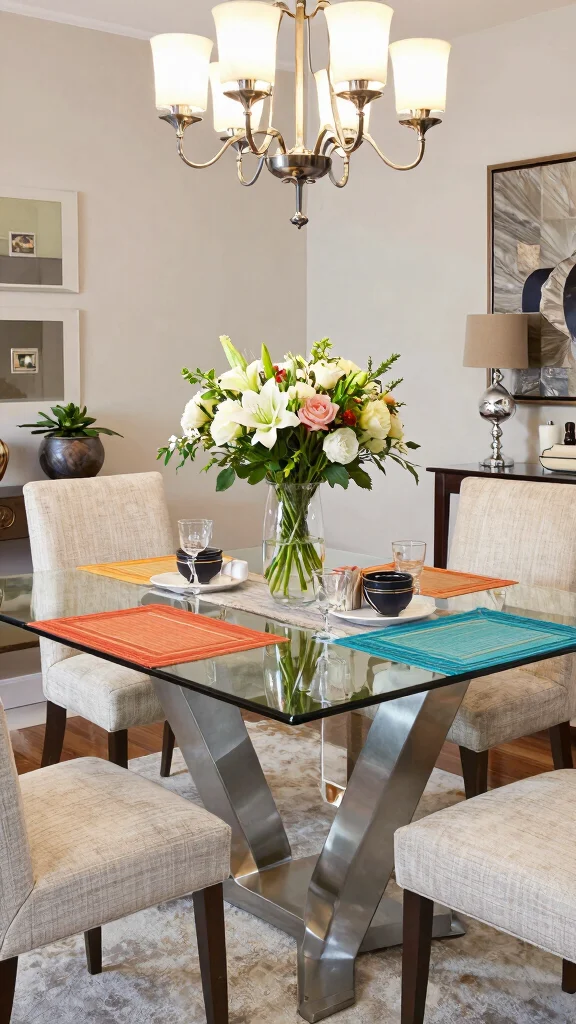 – Consider a bold centerpiece that contrasts beautifully against the glass surface.