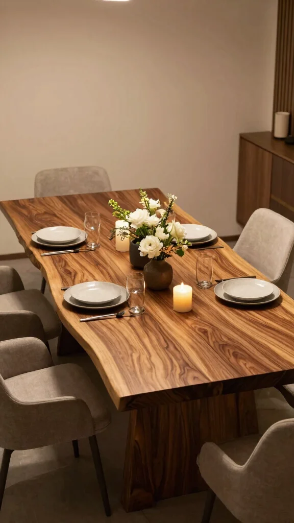 A live edge dining table beautifully showcases the natural shape of the wood, highlighting its unique imperfections. These tables add an organic touch to modern homes, often serving as a captivating focal point in dining spaces. The rough, unfinished edges contrast stunningly with polished, elegant table settings, offering a visually intriguing appeal.