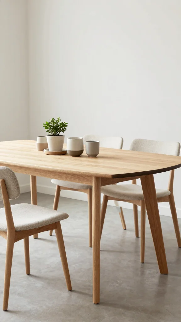If minimalist decor resonates with you, a Scandinavian-style dining table is the perfect fit. Defined by clean lines and functional beauty, these tables often feature light woods or bright white finishes that create an airy atmosphere. A Scandinavian dining setup promotes elegance, pairing beautifully with simple ceramics and natural fabrics for a relaxed look.