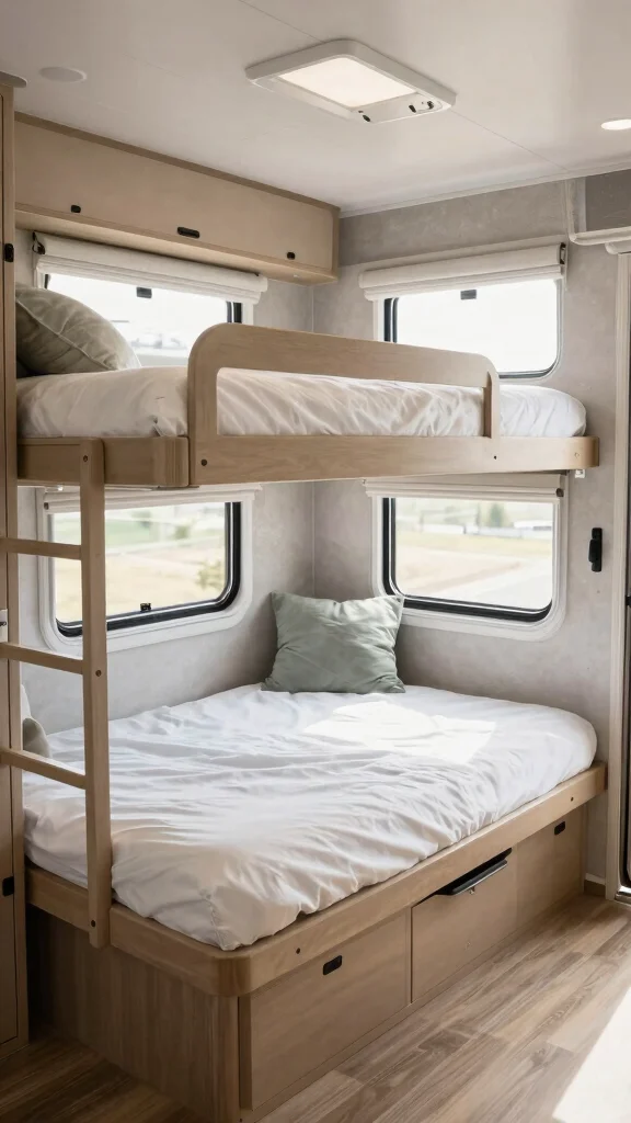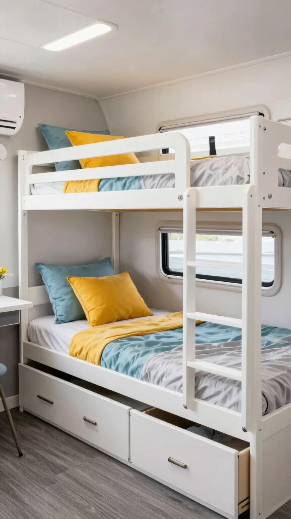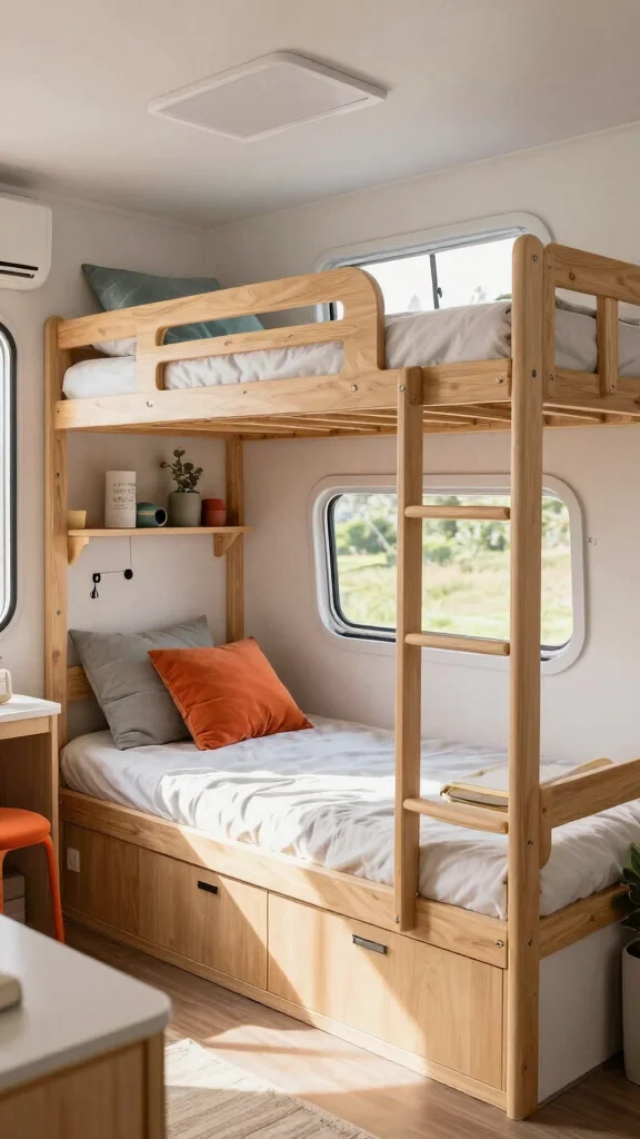 From stacked beds with ample storage to foldable designs that save room during the day, this guide is packed with ideas that can transform your small RV into a cozy sleeping haven. Each idea is designed to be achievable with some basic DIY skills and will help you organize your space like a pro. Get ready to dive into these innovative bunk bed concepts that will enhance your camper experience!