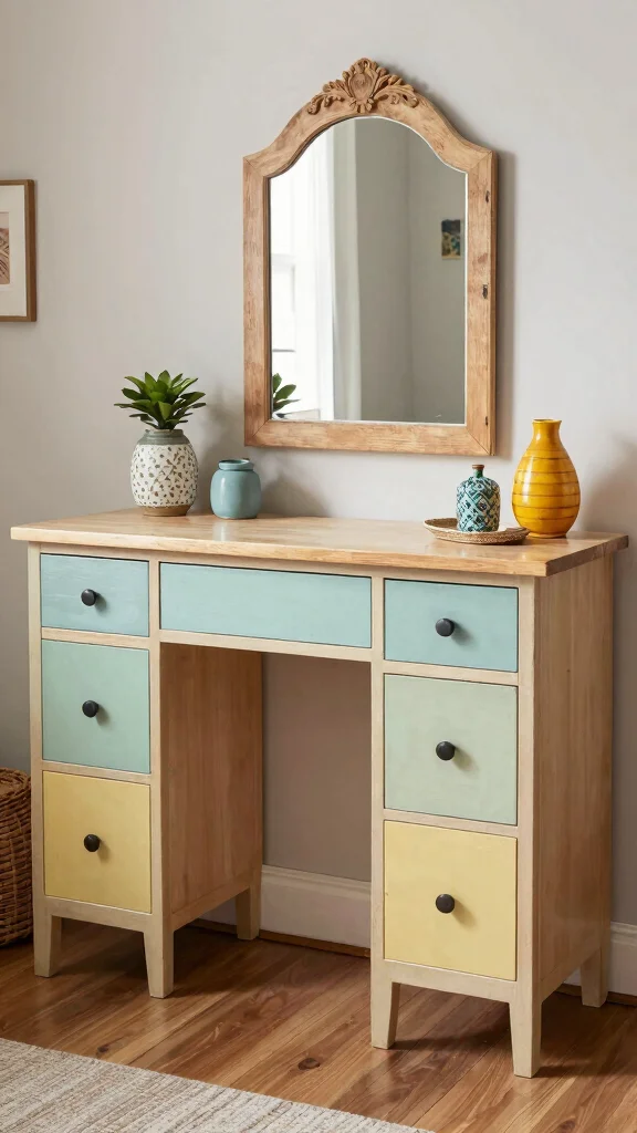 For a pop of personality, consider a colorful accent dressing table. These designs often feature bright colors or playful patterns, making them a fun focal point in any room. Even in compact spaces, a colorful table can inject vibrancy without overwhelming the overall decor.