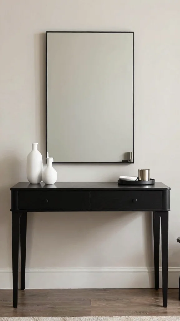 Accessorizing with different textures adds depth, such as sleek ceramics or glossy metals. A large mirror serves as both a functional and decorative piece, enhancing the overall design.