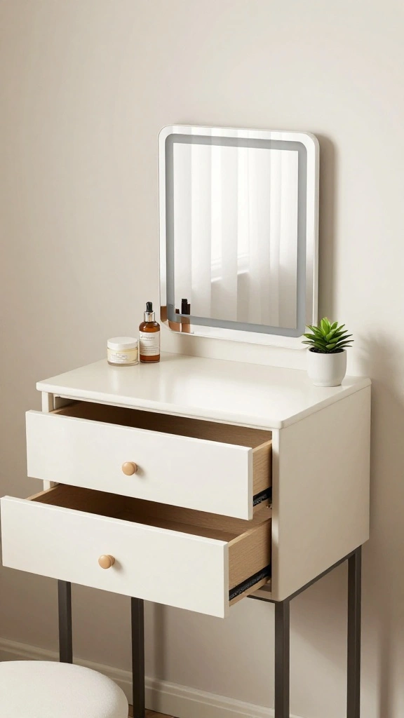 If you need versatility, a multi-functional dressing table is a perfect solution. These designs often include built-in storage, with features like fold-down desks or pull-out shelves, making them ideal for smaller areas. You can keep your makeup organized without sacrificing style or functionality.