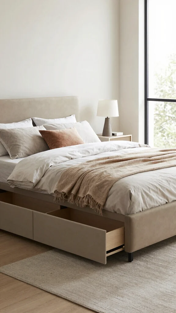 This clever solution enhances both organization and style in your room. The combination of practical storage and beautiful design creates a serene environment for rest.