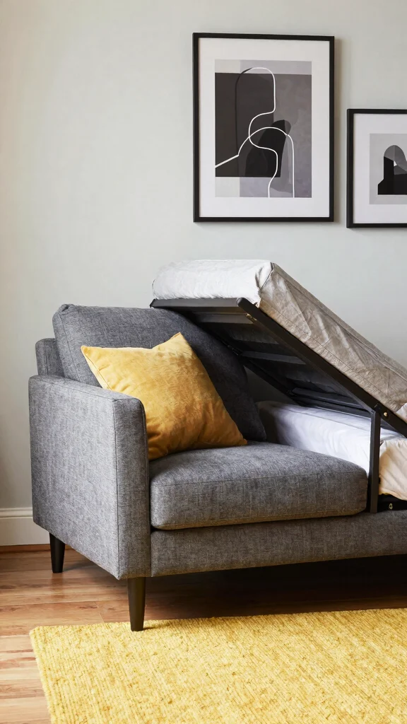 Fun fact: In tiny rooms, a sofa chair that converts into a bed can reclaim up to 60% of floor space. It showcases hidden beds ideas space saving in action.
