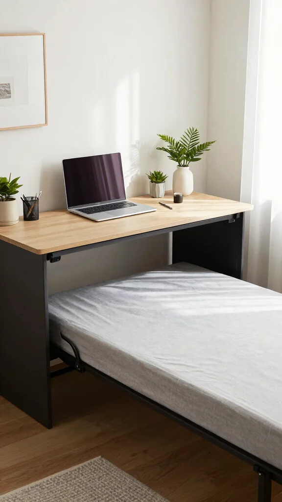 Folding beds and convertible furniture turn one footprint into two or more, which is perfect for small space solutions. Look for folding beds with built-in storage, a wall bed that folds up to reveal a desk, or a sofa bed that hides a mattress inside. A good multifunctional furniture setup might be a sofa that becomes a guest bed, or a coffee table that lifts into a work surface with a bed underneath. When planning, map your layout to keep pathways open and choose items that maximize vertical space. Check the mechanism for smooth operation, ensure the mattress is comfortable, and verify the unit fits through doors; this keeps tiny room organization simple and practical.