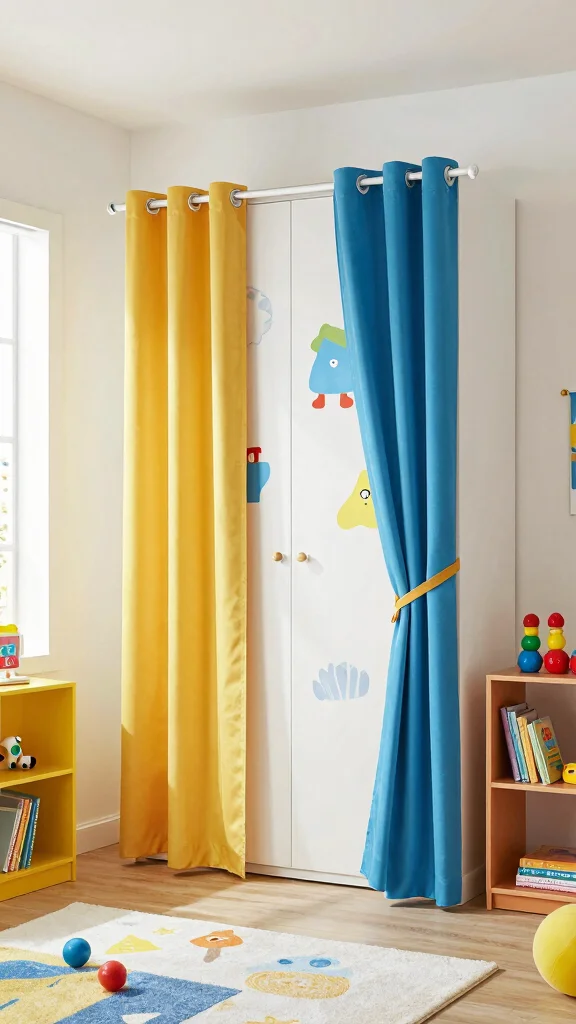Swapping traditional wardrobe doors for colorful curtains introduces a whimsical touch to your child’s room. This playful design not only adds character but also allows for easy access to their belongings. Imagine vibrant patterns that reflect your child’s personality, transforming the wardrobe into a fun focal point.