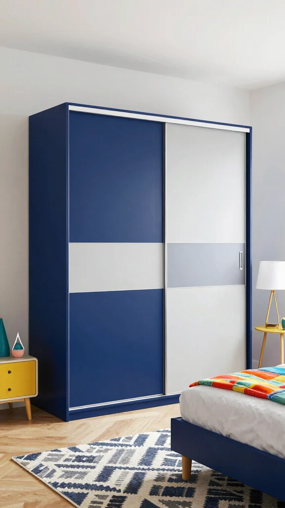 Inject personality into your bedroom with a two-tone sliding wardrobe that showcases contrasting colors for a dynamic look.