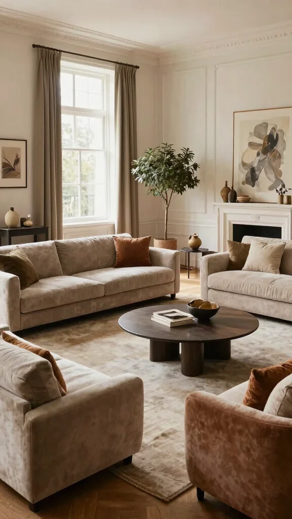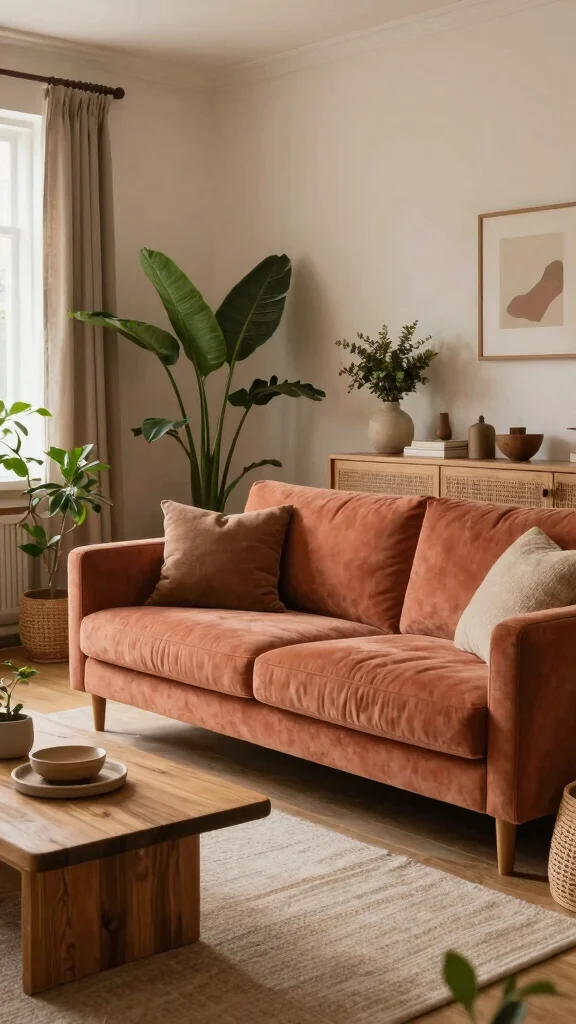 Earthy palettes invite a warm, cozy ambiance, making your living room a perfect retreat.